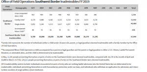 As the accompanying CBP charts dramatically demonstrate, apprehensions of inadmissible migrants – an indication of overall flows, even if far from all illegal border crossers are apprehended – have skyrocketed on the Southern Border (what CBP calls the Southwest Border), even as Pelosi and Schumer and the rest have denied any crisis. In the month of May alone, 144,278 people were either apprehended (132,887) illegally crossing the border, or were found to be inadmissible (11,391) at formal border crossings. In just over the first six months of fiscal year 2019, there had been more apprehensions along the border than in the entire previous fiscal year, with the numbers continuing to mount significantly. As noted, at the current rate, they will equal or surpass the peak illegal border-crossing years of 2000 and 1986.